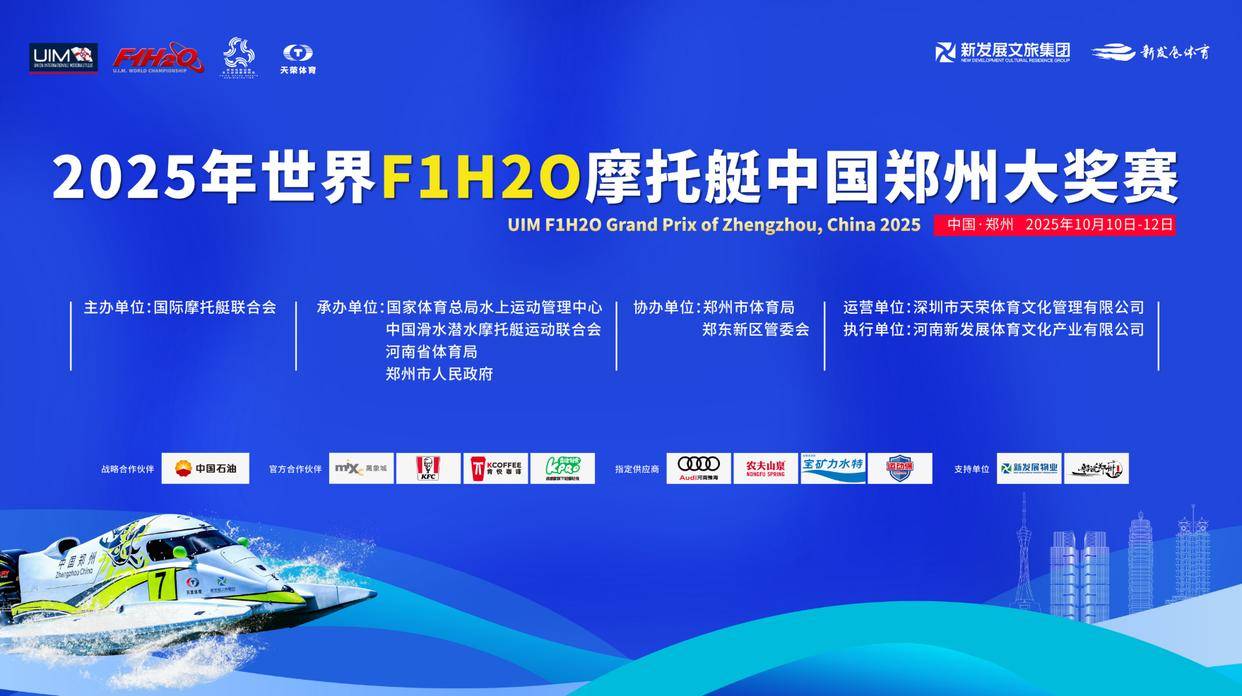 2025年F1H2O郑州大奖赛由国际摩托艇联合会主办,国家体育总局水上运动管理中心、中国滑水潜水摩托艇运动联合会、河南省体育局、郑州市人民政府联合承办,郑州市体育局、郑东新区管理委员会协办,深圳市天荣体育文化管理有限公司运营,河南新发展体育文化产业有限公司执行,将持续到10月12日。