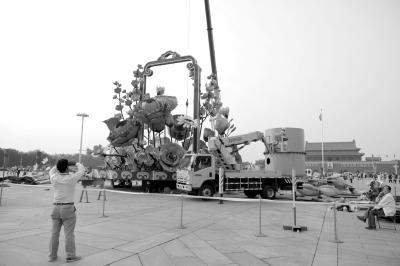 “十一”将至,作为广场主题花坛,“大花篮”将再次绽放在广场。21日,记者在广场看到,工作人员正在进行花朵的插制工作,已经完成1/3左右。记者了解到,今年的“大花篮”规格与往年相似,主题花坛会大面积使用去年研发成功的新品系小菊、天竺葵、迷你长寿花等花材,建国门与复兴门也将在国庆前布置反映“期盼冬奥会”及“四个全面”内容的两组花坛,全部摆花工作预计25日完成。