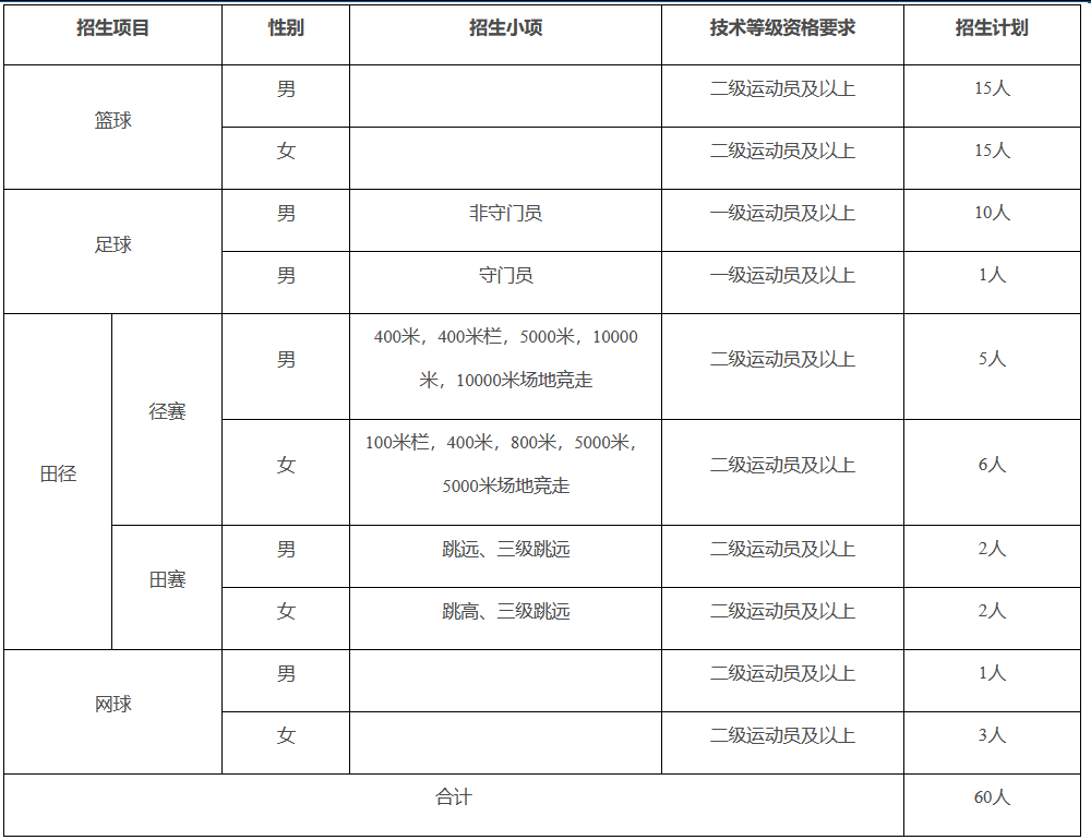 注:以上各招生项目最终录取人数将视生源情况确定,学校可对招生计划进行项目间调整。篮球项目考生使用五人或三人篮球运动员技术等级证书均可报名,按照篮球项目考试方法与评分标准参加篮球专项测试。