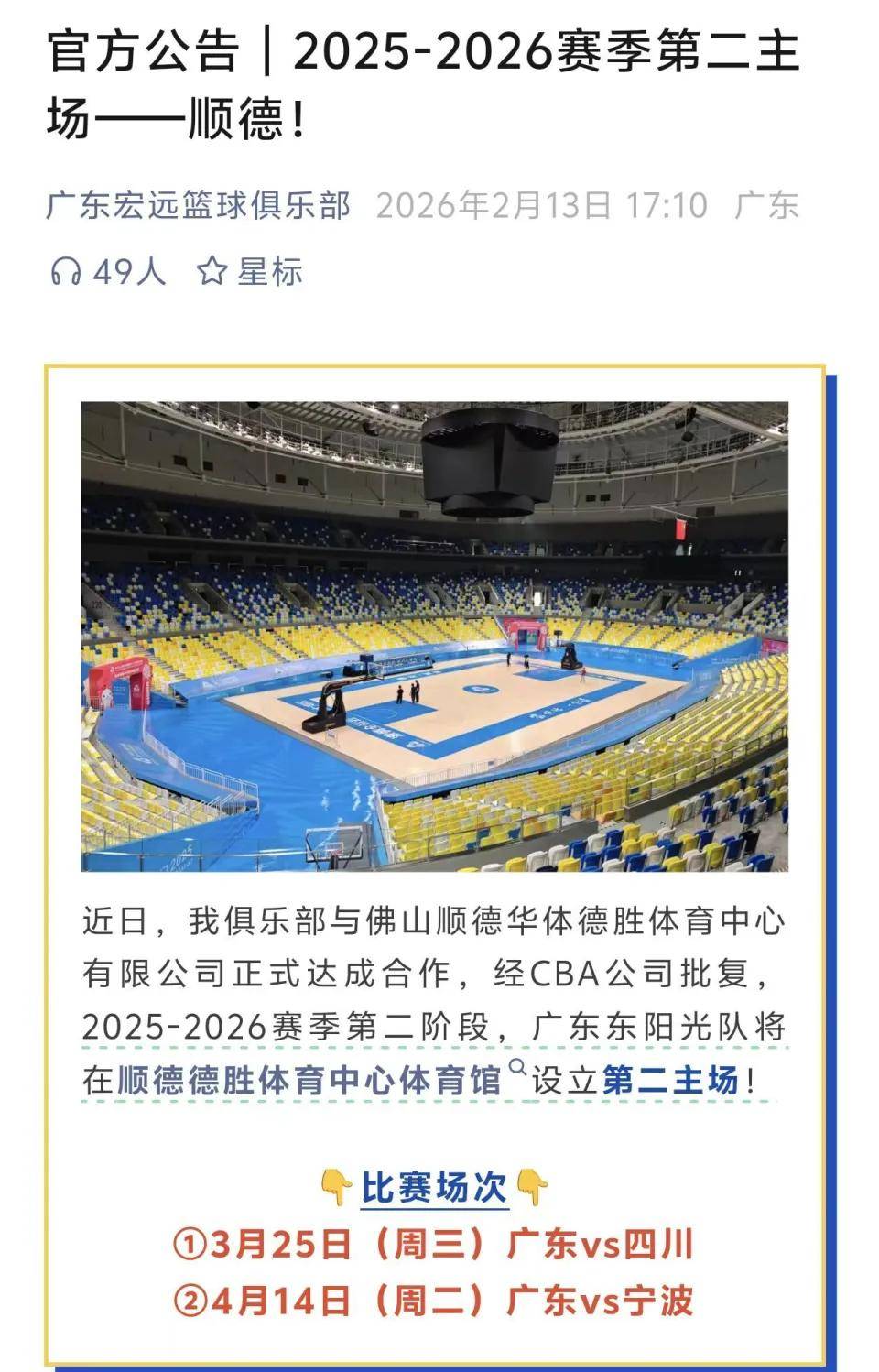 2026-02-16体育,足球,波胆,反波胆,角球,串关,大小球,世界杯,欧洲杯,比分,足球比分,赛事,足球赛事,电竞赛事,体育赛事直播,足球直播平台,世界杯直播,足球直播,体育直播,NBA直播,游戏直播,LOL直播随着CBA常规赛第二阶段的临近,广东宏远男篮的征程也即将翻开新的篇章。根据俱乐部官方消息,除东莞东风日产文体中心体育馆之外,顺德德胜体育中心体育馆将作为球队本赛季的第二个主场,迎接两场关键战役。