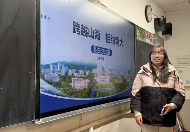 环境与地理科学学院“青衿载梦”实践团赴母校青岛三十九中开展“心系母校 梦圆青大”招生宣传实践活动。宣讲现场,实践团围绕大学概况、学科特色、招生政策、校园生活等内容展开细致介绍,结合青大办学特色,系统介绍学校发展脉络、多学科布局及人才培养模式与就业前景,并针对新高考选科要求作细致解读,为学弟学妹答疑解惑。此次实践搭建起了高校与高中的沟通桥梁,返校宣讲既是感恩之旅,更是责任之行。以真诚专业传递青大温度,在冬日校园生动展现青大学子风采,实践团将以此次活动为契机,持续发挥榜样作用,以青春行动传递校园温度,助力更多学子明确成长方向。