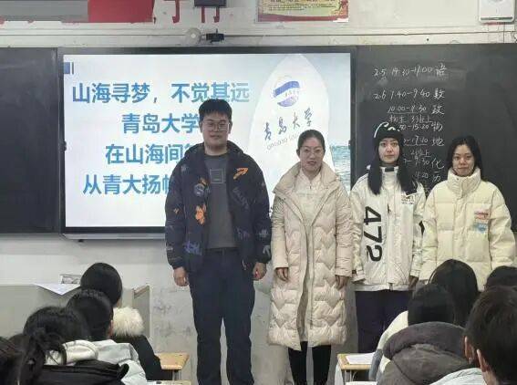 数学与统计学院“传承数韵 青春引航”实践团先后走进宁波三中、乳山二中,开展“心系母校 梦圆青大”招生宣传实践活动。活动准备期间,实践团成员提前沟通对接,精心筹备宣讲资料。宣讲环节中,团队结合自身备考经验与就读体验,详细介绍青大办学特色、学科优势、招生政策及学院专业设置与培养方向。宣讲结束后,成员们发放宣传手册、互动答疑,耐心解答志愿填报、专业选择等问题,分享实用备考技巧。此次实践活动加深了成员对青大的认同感,也让更多学弟学妹全面了解青岛大学。未来,实践团将继续以青春力量搭建沟通桥梁,吸引更多优秀学子圆梦青大。