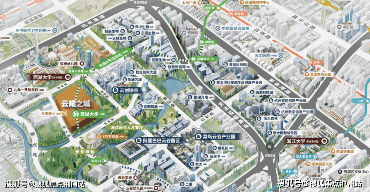 双一流大学西湖大学,就像印玺一般坐镇在这里,然后是阿里云全球总部、菜鸟云谷产业园、云创镓谷、云谷公学……这些「装备」随便搬一个到其他板块,都值得被炫耀好几年。