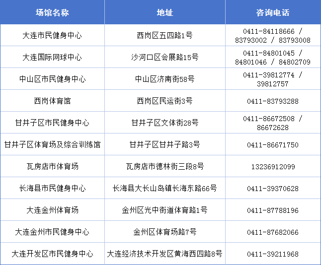 2026年度实施惠民开放的12家公共体育场馆,覆盖市内四区及金普新区、长海县、瓦房店市等区域,涵盖网球、羽毛球、乒乓球、篮球、排球、游泳、田径、综合健身等多类运动项目。